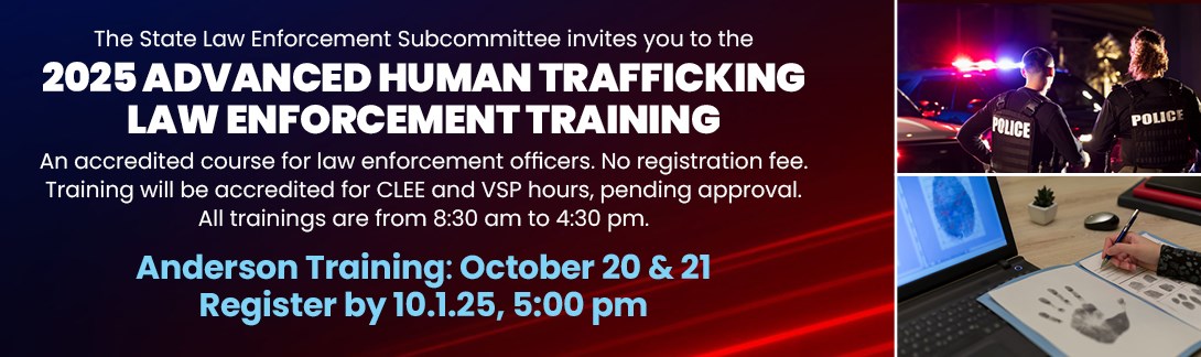 “Many are at risk for human trafficking in South Carolina. By educating young people and adults about the crime and vulnerabilities, we hope to help keep them safe. The Community Outreach Subcommittee meets regularly to review awareness material, provide input, and coordinate anti-human trafficking outreach events to ensure accurate and consistent messaging in our state. We are pleased that members are active in the regional task forces to share this information in communities across our state.”